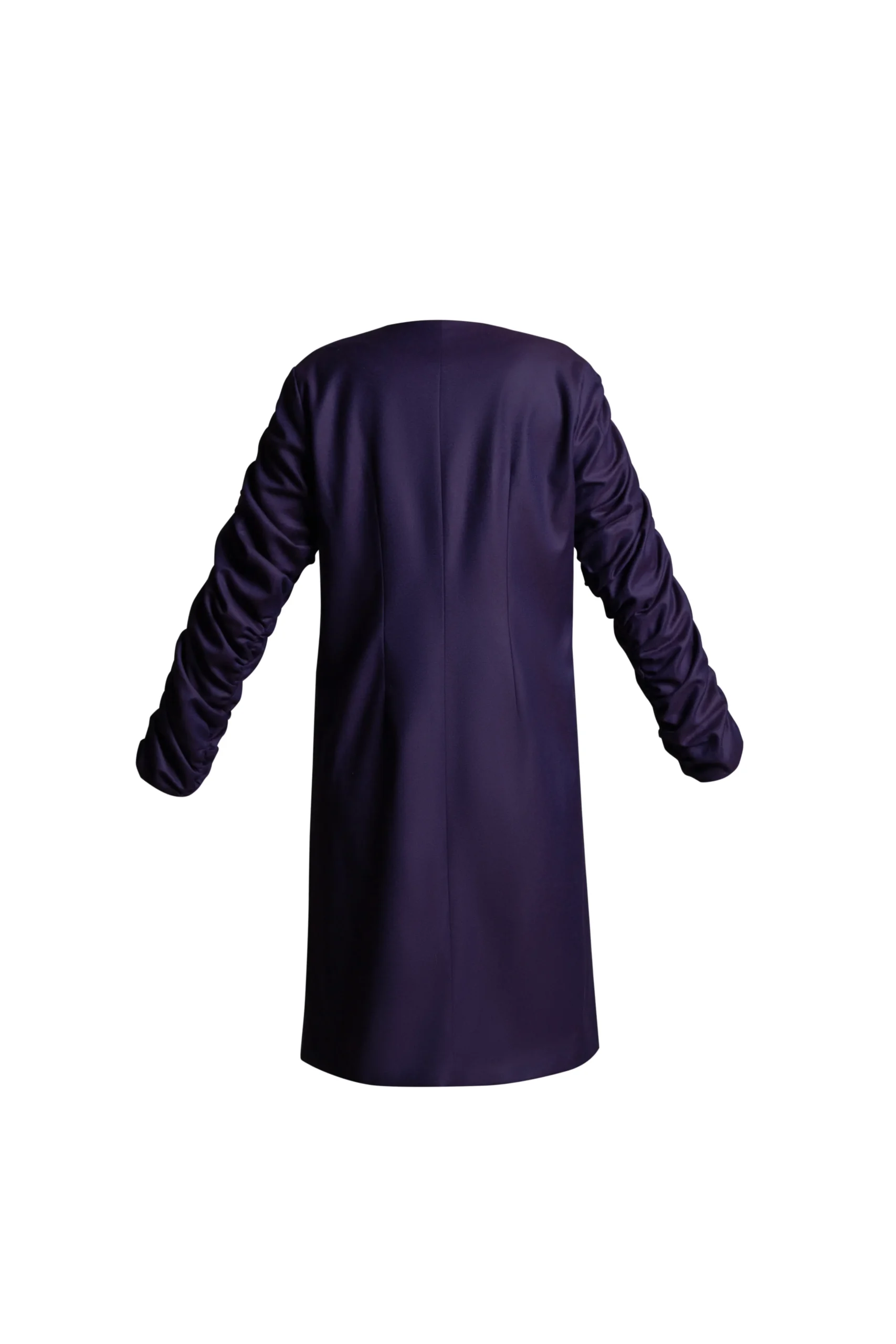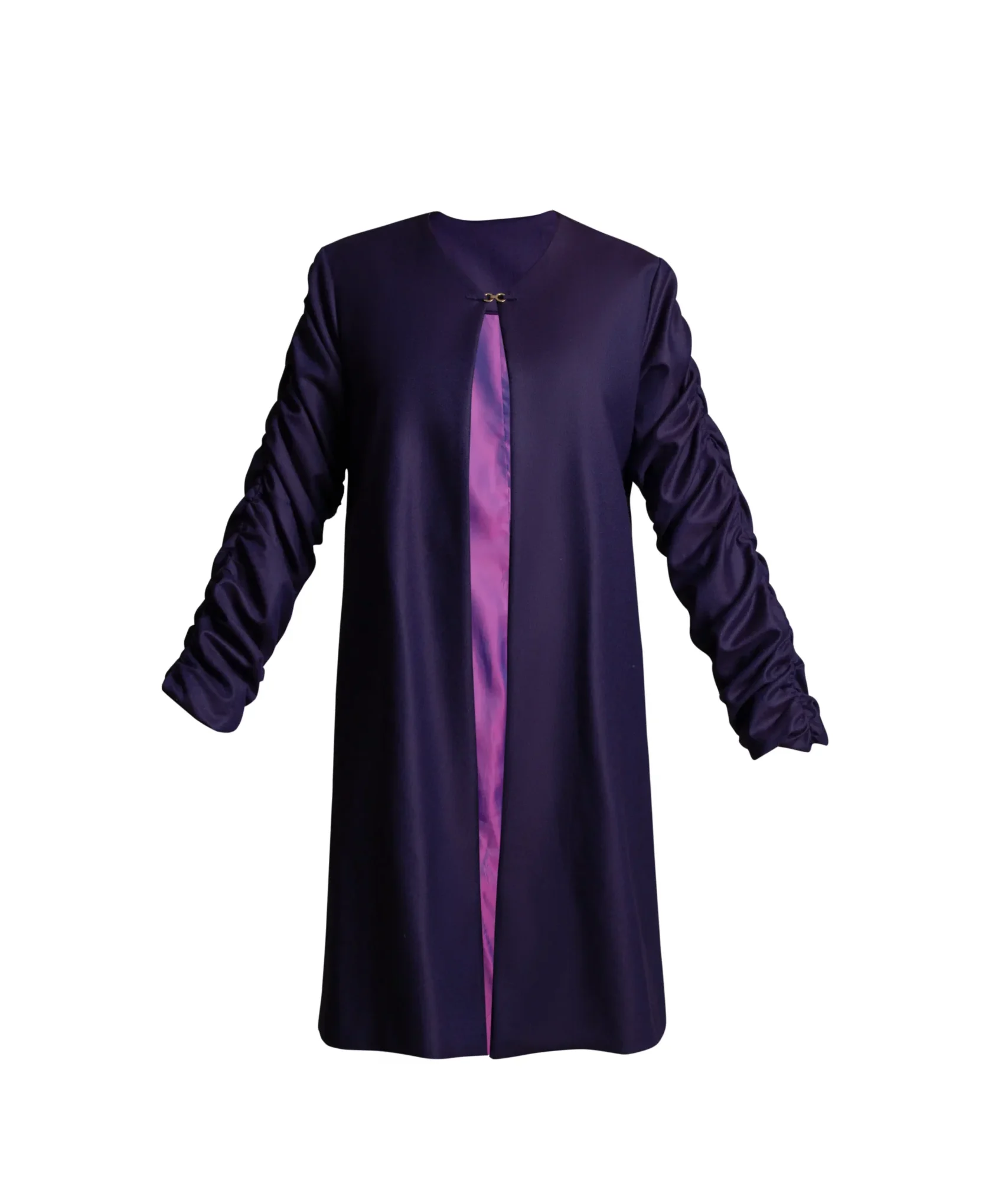 Este abrigo, confeccionado en paño 100%, se distingue por su técnica de recogido en las mangas, su cuello redondo escotado y un elegante broche dorado que añade un toque de sofisticación. Con un largo hasta la rodilla, combina elegancia y comodidad, convirtiéndolo en una prenda versátil ideal para cualquier ocasión donde desees destacar tu seguridad y estilo.